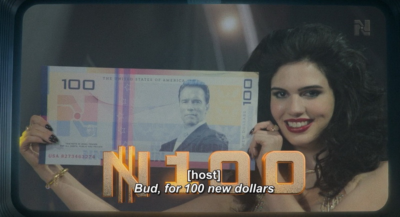 No, I'm not saying anything — Wright knows how to make cool shots and cool decisions about details. But the general problem is that he can't create a cool background for all of this. Guys (insert a meme here) ha ha ha, I live here. I can hardly believe that we have a whole bunch of people here who REALLY believe in what is happening on TV. Yes, they can pretend to believe it, but then be so surprised to find out about the lies that they go to the barricades? Oh, I'm sorry. Again— there is a scene where the host of the show openly sends the head of the show, referring to the contract. Dude, this guy just sent a whole bunch of people to their deaths. Judging by the lore of this world, he is the law here. And you just walked away, saying that you have a line in the contract somewhere? You either acknowledge that you have the power of contracts, or maintain faith in the right of the strong. These two things don't go together.
