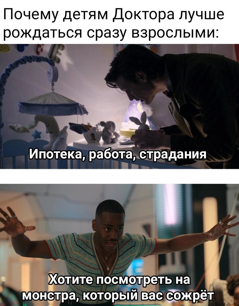 I didn't get it.: The doctor who talks about Babies all the time - oh, space babies! - is this a reference, meta, or what is it? Why are you so tired of it so many times?