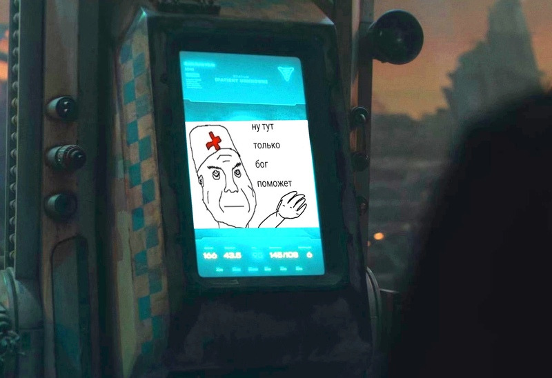 - while the mine is determining this, the Doctor on it is waving his arms and the pressed body of a soldier, and is almost dancing, while the mine still does not understand whether to blow it up or not 🤡
