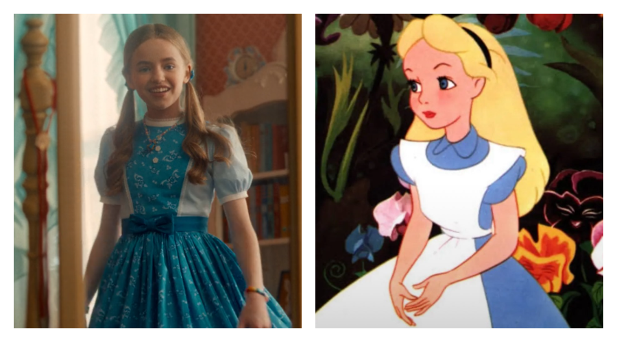 Same hairstyle and blue dress